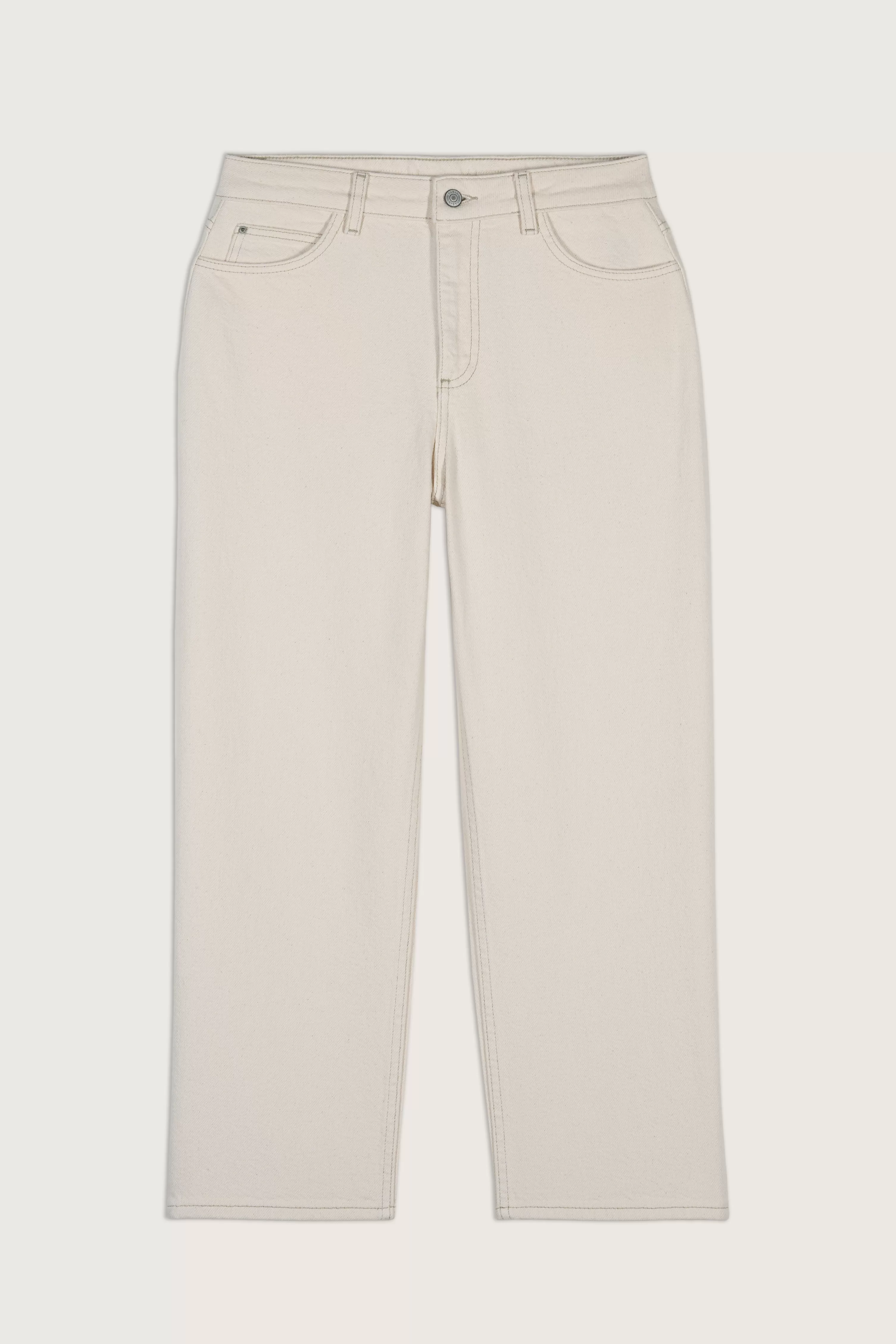 Aime Jeans Zijn Een Musthave In Onze Zomergarderobe! Het Is Gemaakt Van Ecru Katoendenim En Heeft Een Zeven-Achtste Flare-Snit Die De Enkel Onthult En Een Hoge Taille Voor Een Slanke Look. De Achterzak Is Geborduurd Met Het Kenmerkende Logo Van Ba&Sh En De Riemlussen Zijn Versierd Met Een Bijkomend Detail: Een Zilveren Metalen Gesp Gegraveerd Met Westerse Inspiraties In Een Sieradengeest, Om Te Accentueren Door Het Te Combineren Met Een Crop-Top En Mooie Sandalen.