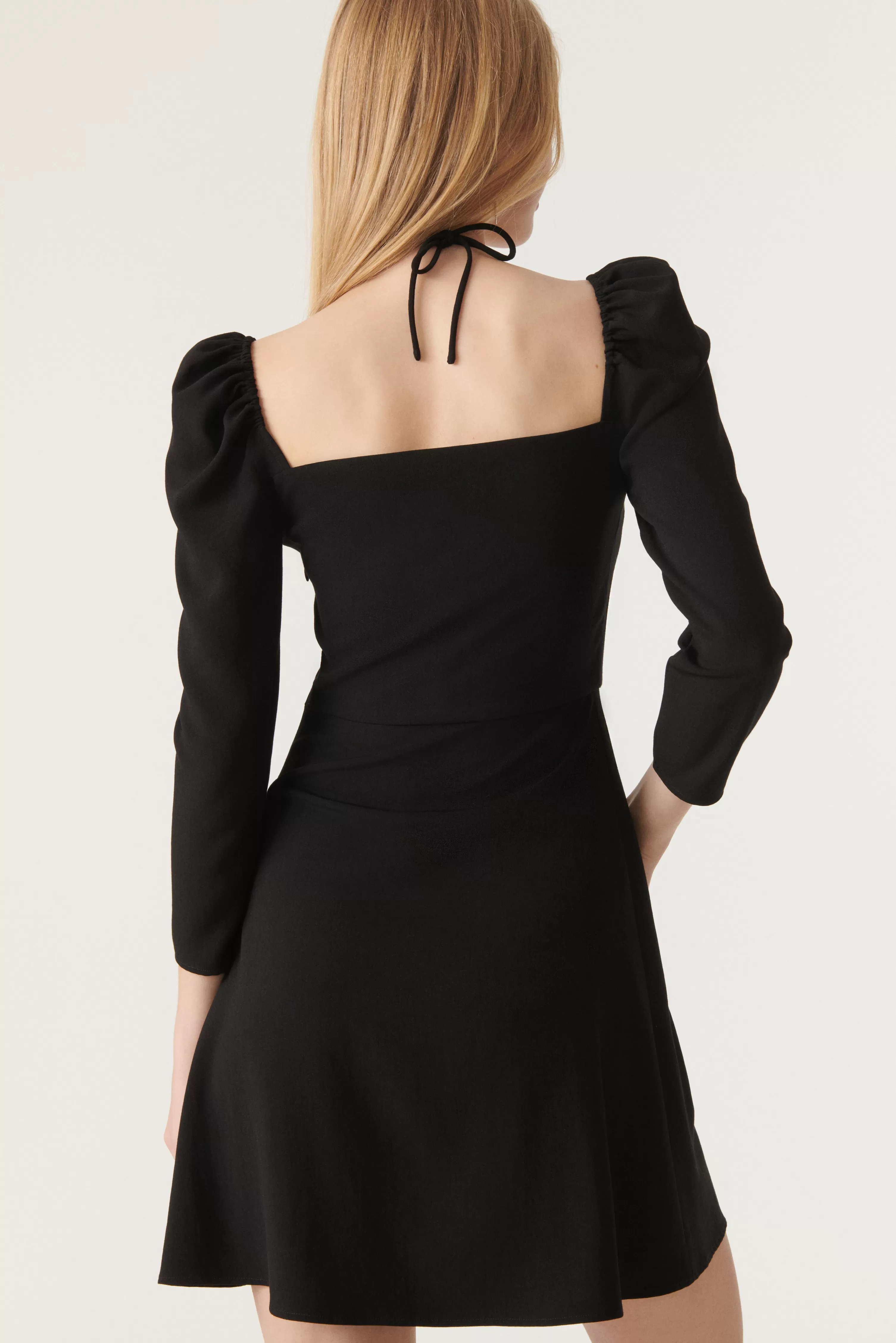 Elegant En Glamoureus, De Jurk Jumla Valt Op In De Garderobe Met Zijn Verleidelijke Lijnen. Dit Knielange Model Heeft Driekwart Mouwen. We Houden Van De Elastische Vierkante Halslijn Bij De Schouders En Verfraaid Met Een Strik Om Te Strikken Voor, Waardoor Een Mooie Kleine V Ontstaat. Dankzij De Wijd Uitlopende Snit En De Blote Rug Bovenaan Benadrukt Deze Jurk Het Silhouet. Draag Hem Met Of Zonder Riem, Westernlaarzen Of Pumps.
