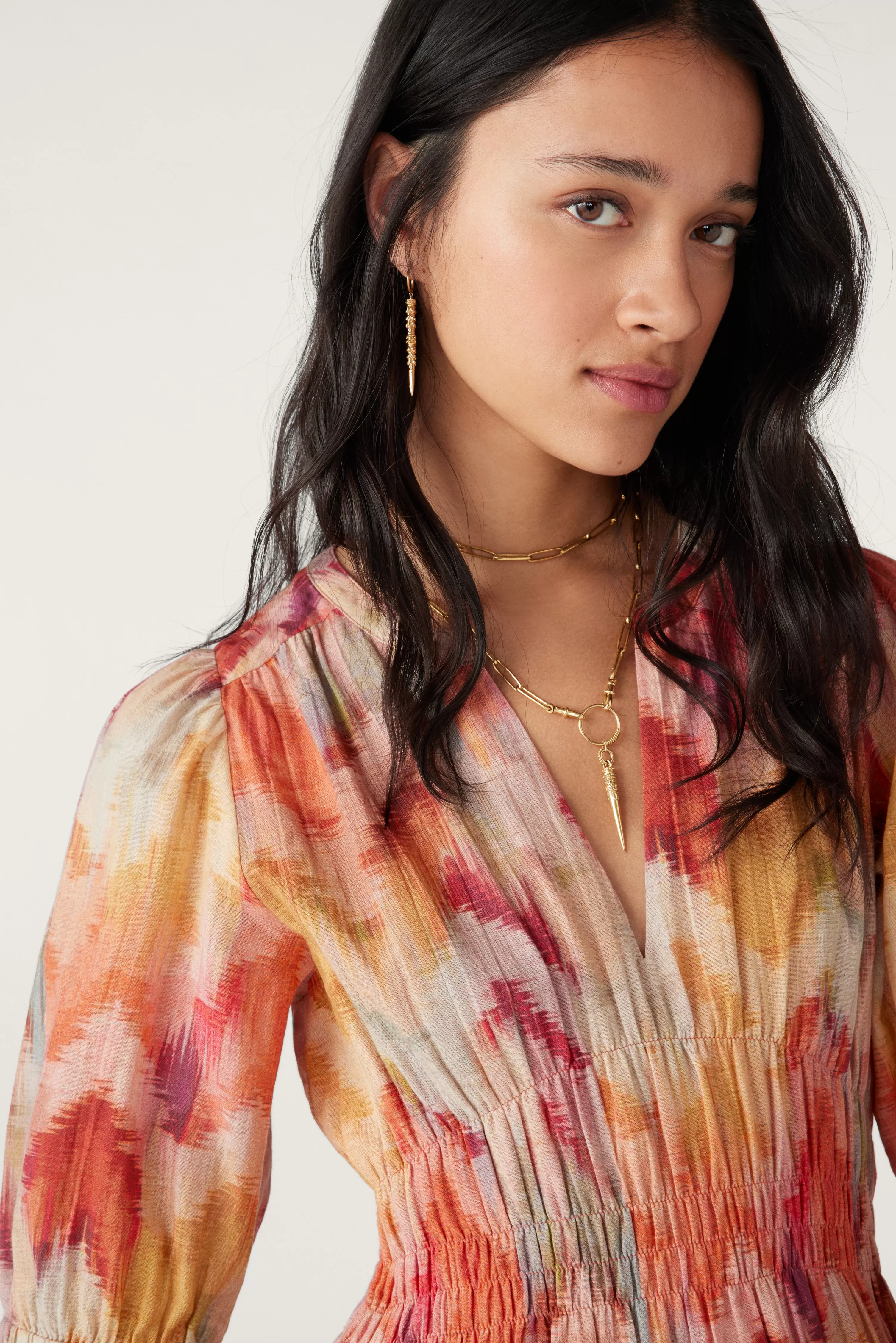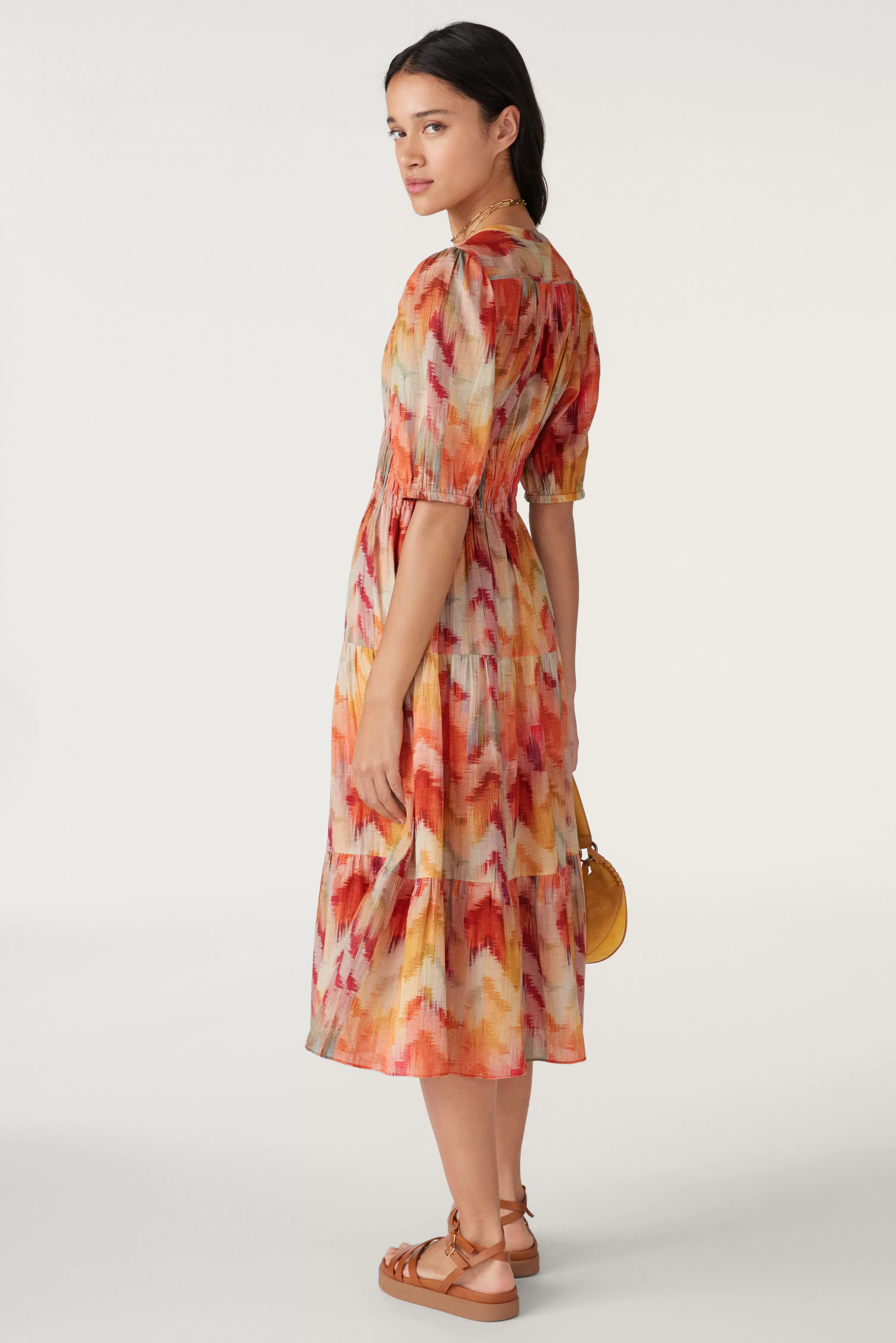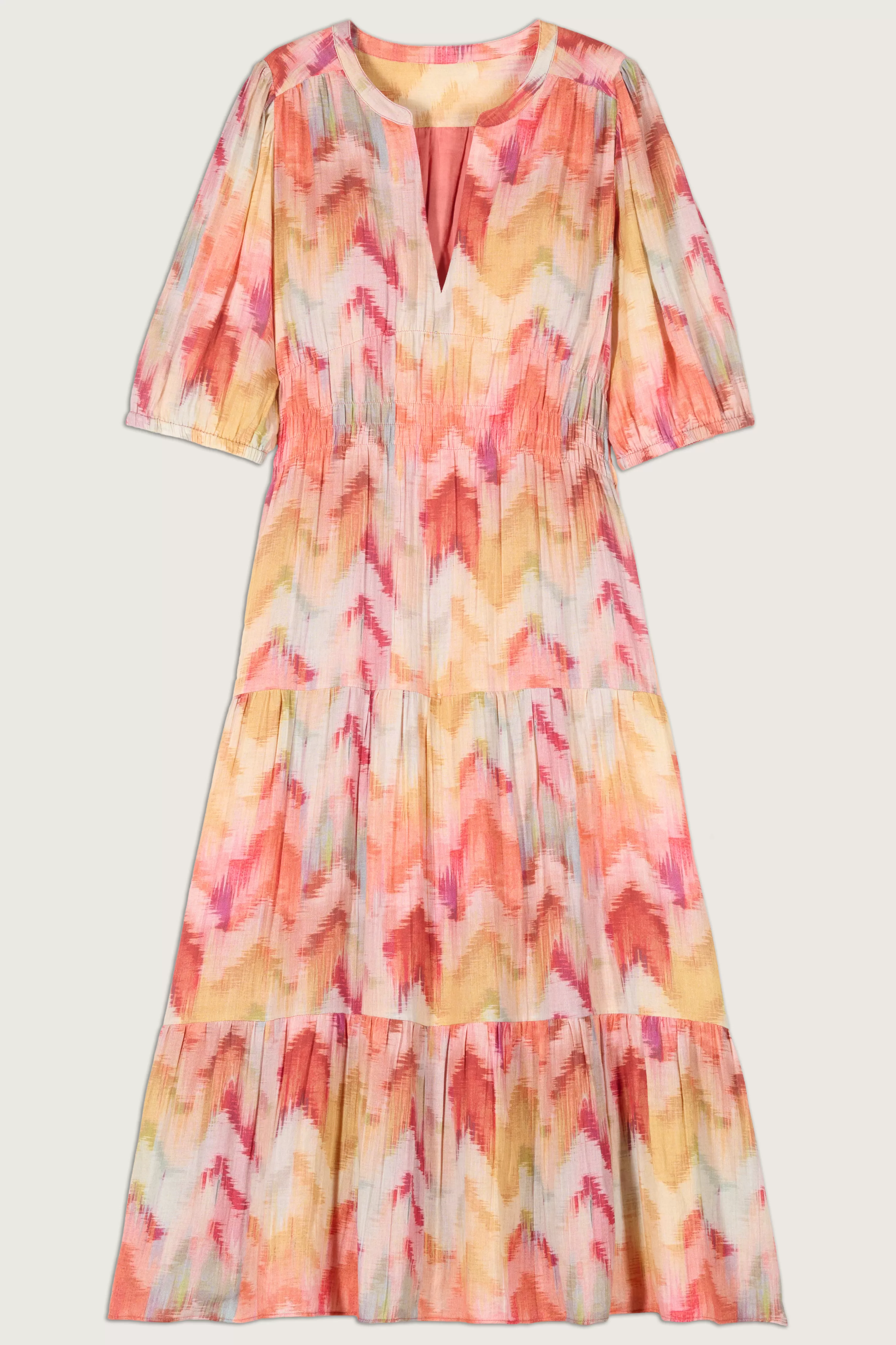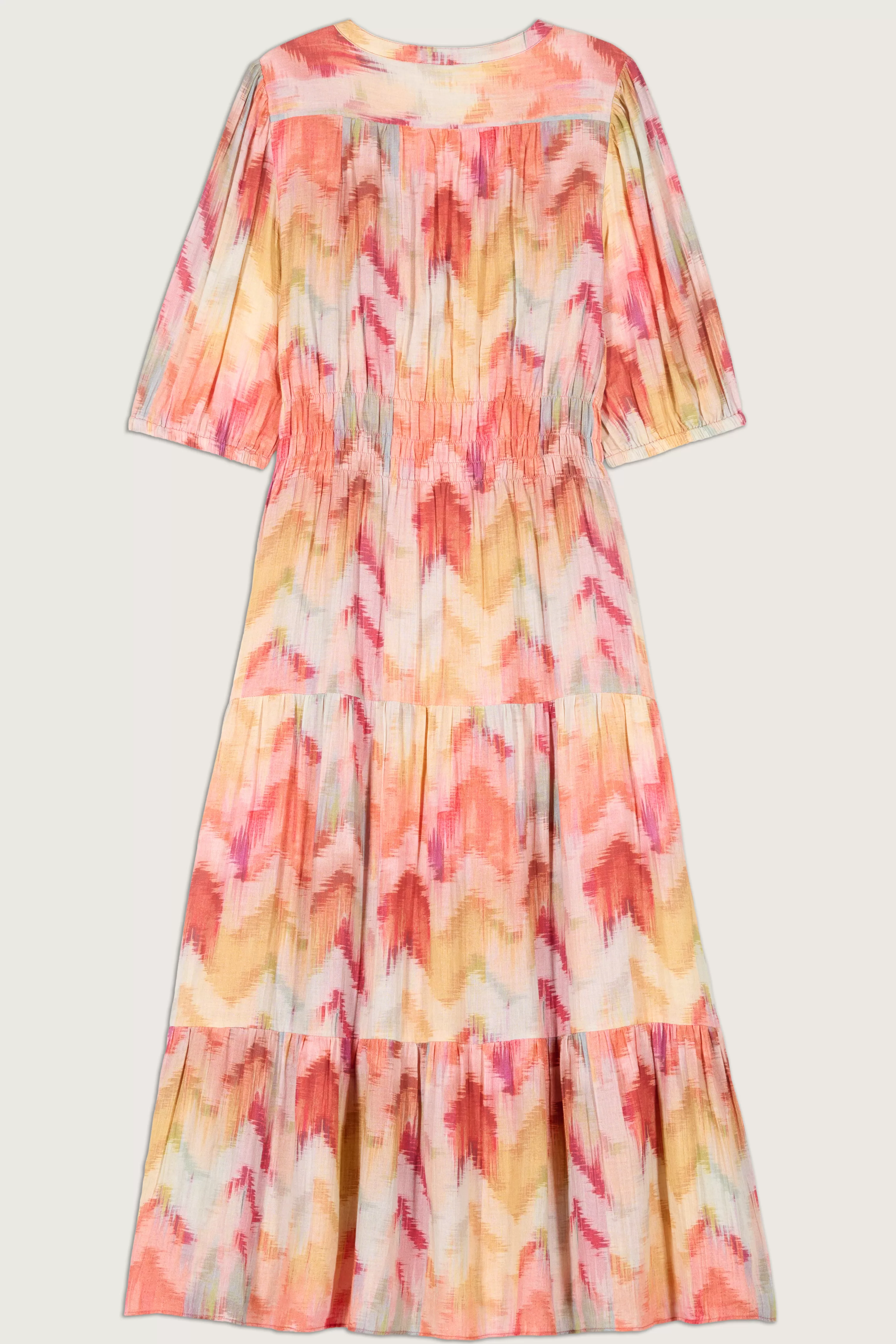 Jurk Anissa Is Een Kleurrijk Halflang Model Dat Je In Een Goed Humeur Brengt. Korte Elastische Mouwen, V-Hals Afgewerkt Met Een Bies, Het Is Elegant En Zeer Modern. Smocks Verstrakken De Taille En Creeren Onweerstaanbare Plooien. Deze Jurk Is Zeer Comfortabel En Aangenaam Om Aan Te Raken. We Houden Van Het Donkere Paneel Aan De Onderkant Van De Jurk Dat Het Stuk Nog Meer Karakter Geeft. Te Combineren Met Sandalen Of Laarzen!