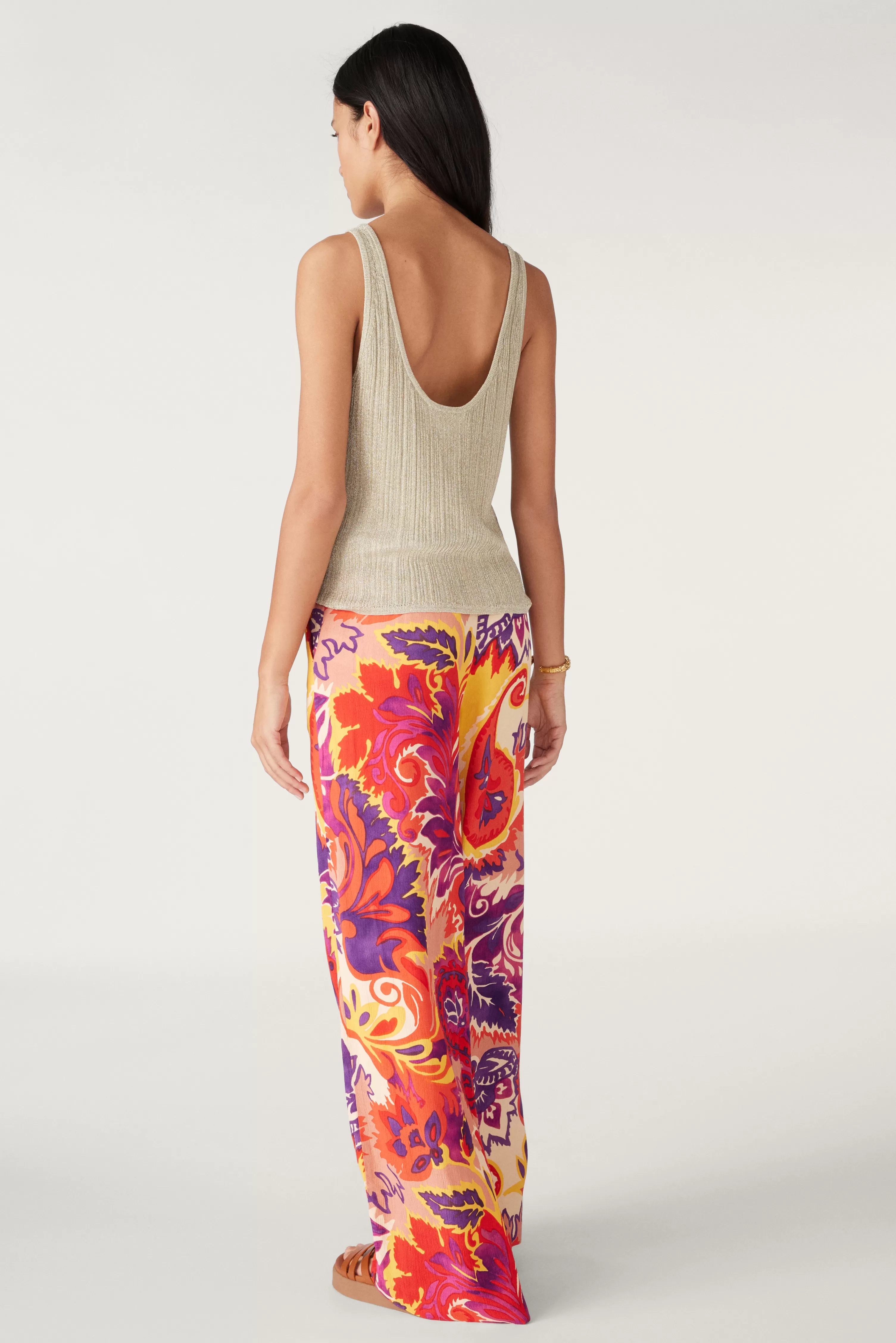 De Naomie Broek Zal De Hippie In Je Wakker Maken! Dit Zeer Wijde Model, Aangesloten Op De Heupen, Heeft Een Lage Taille Die Wordt Geaccentueerd Door Een Brede Contrasterende Band, Een Onzichtbare Centrale Sluiting En Twee Italiaanse Zakken. Het Is Gemaakt Van Een Zeer Lichte Stof Met Een Luchtige Plooistructuur. We Werden Verliefd Op De Groovy Print In Warme Kleuren In Een 70’S Spirit Die Een Mooie Energie Uitstraalt. Vrolijke Broek Die Past Bij Een Effen T-Shirt In Dezelfde Kleuren.