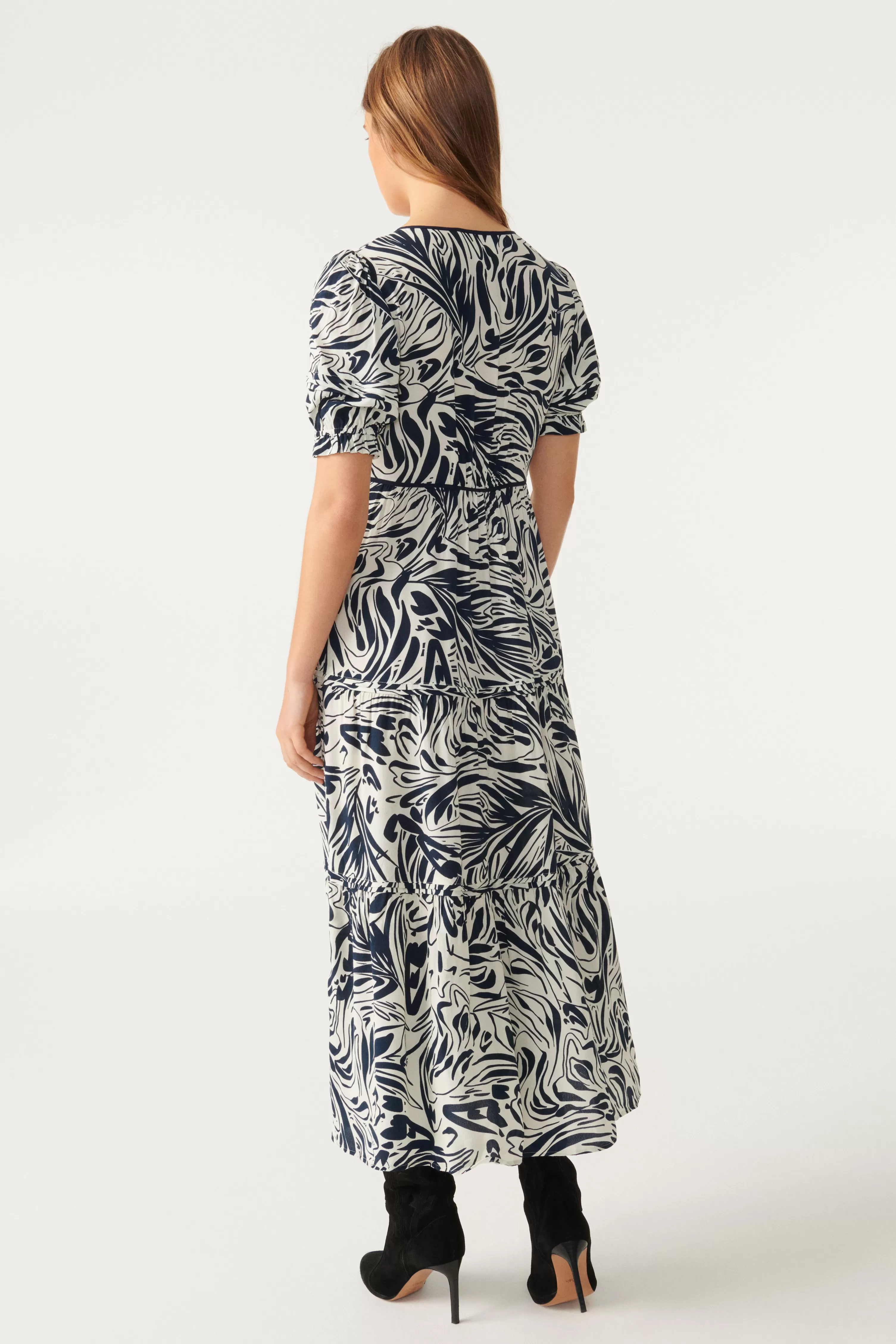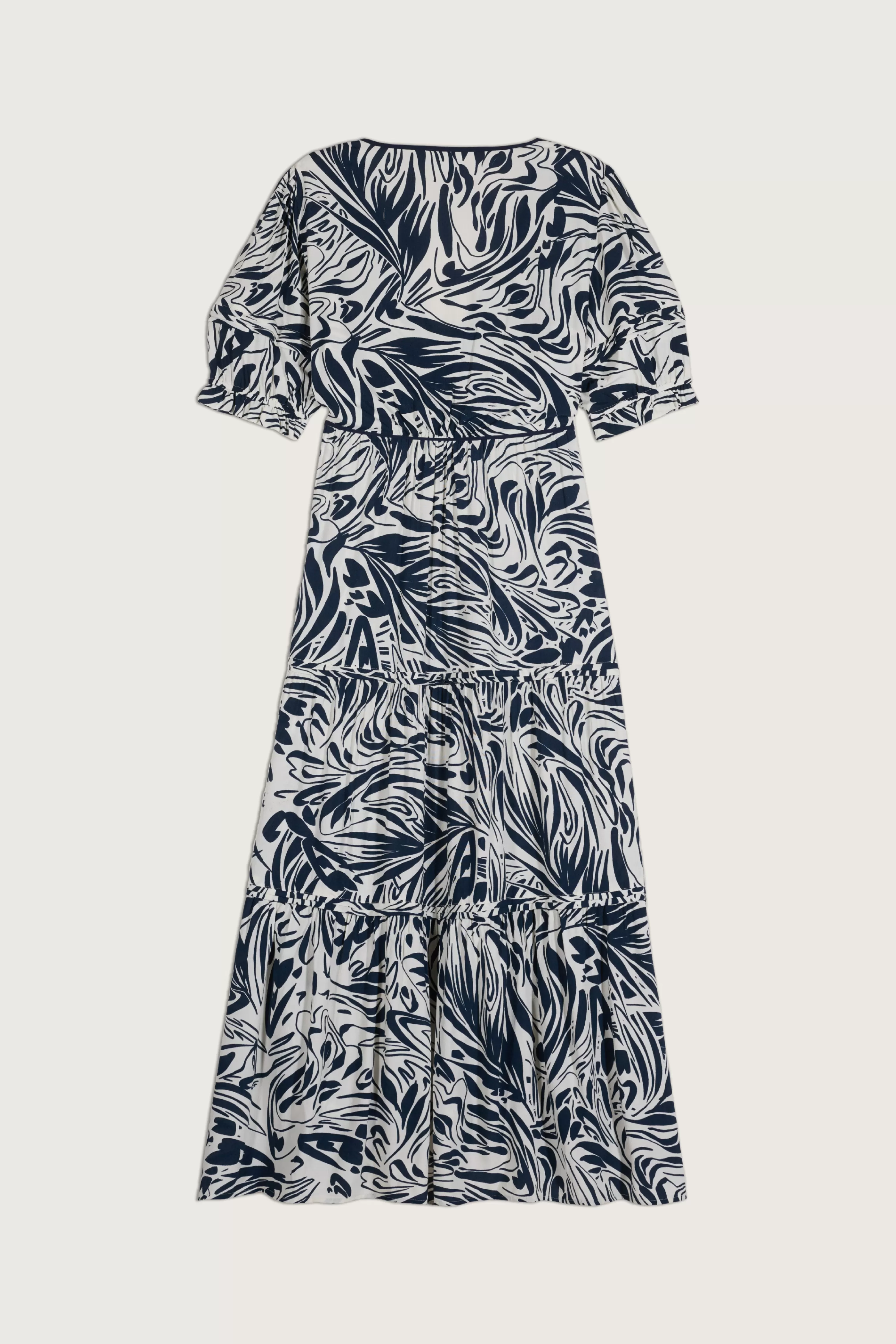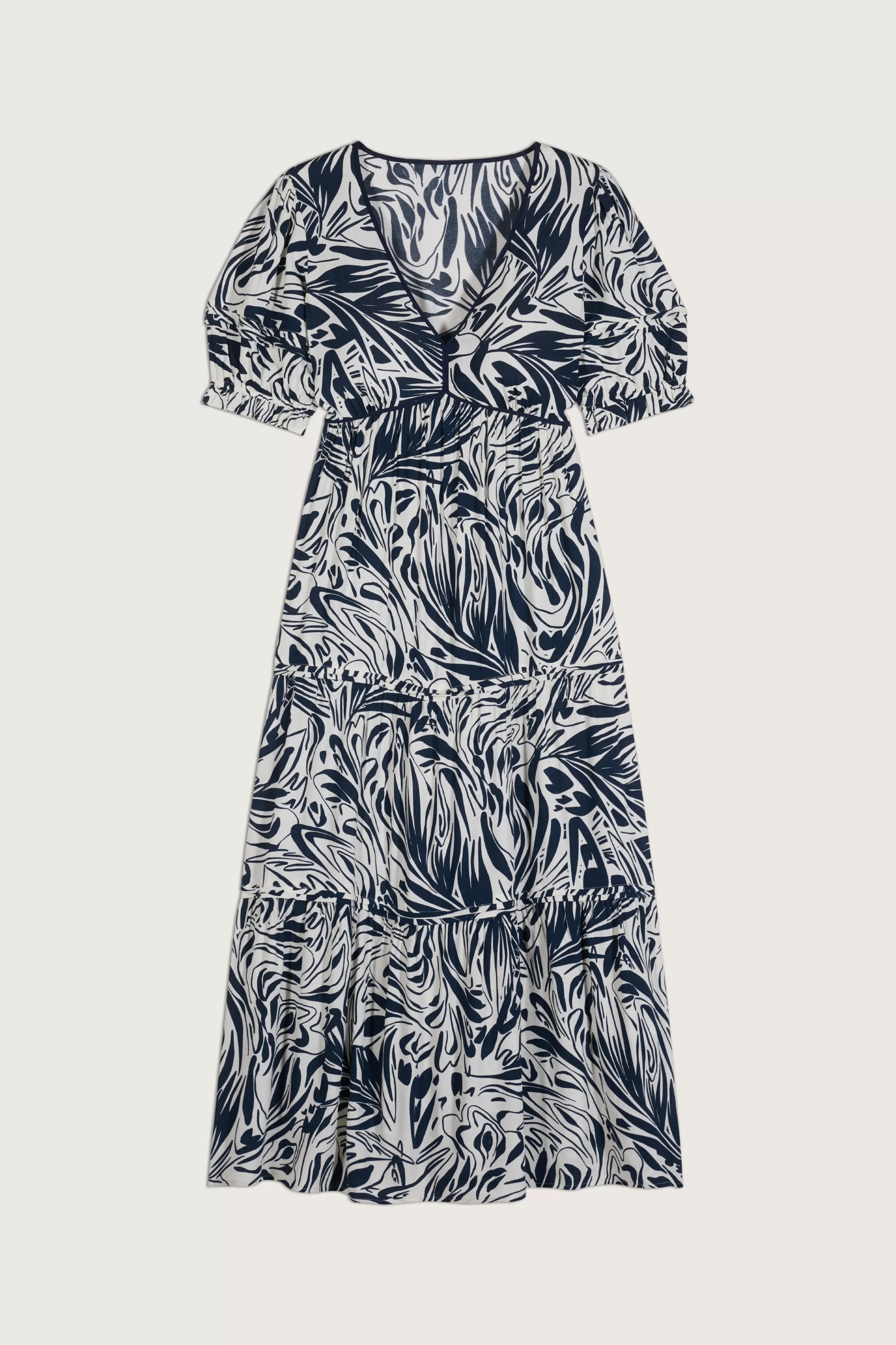 De Jurk Calas Is Een Midi-Model In Vloeiende Viscose En Zeer Aangenaam Om Te Dragen, Als Een Streling Op De Huid. Mouwen Tot Aan De Ellebogen Met Ruches, Het Heeft Een V-Hals En De Snit Accentueert De Borst. Zowel Elegant Als Zeer Modern Met Zijn Prints, Het Zal Zowel Overdag Als ‘S Avonds Perfect Zijn. We Houden Van De Donkere Armsgaten Die Het Stuk Volume Geven. Draag Met Een Paar Laarzen Voor Een Killer Look.