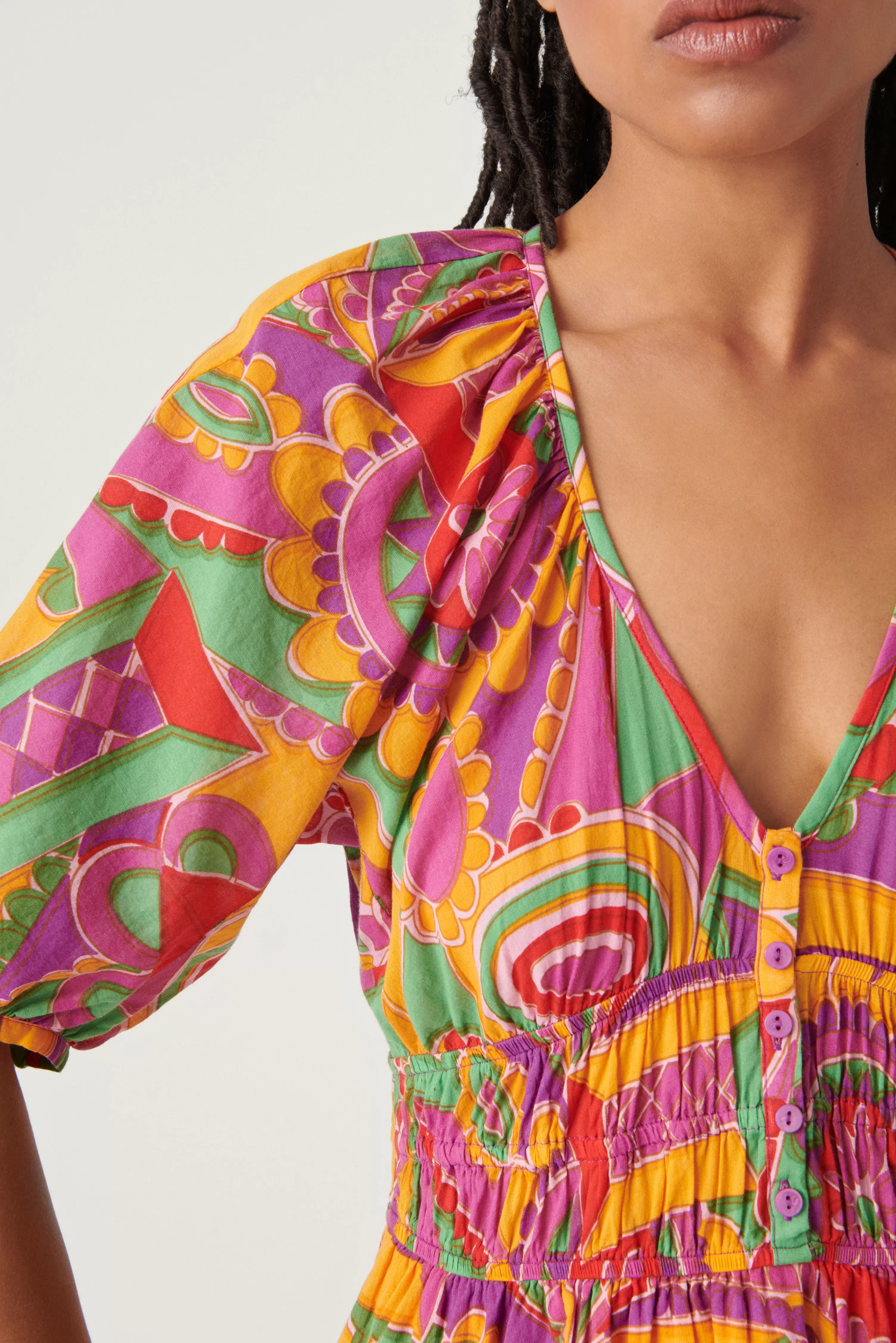Een Echt Concentraat Van Vrouwelijkheid En Delicatesse, De Dova-Jurk Blijft Ons Verleiden. Met Zijn Uitlopende Snit En Perfecte Pasvorm Onderscheidt Dit Model Zich Door Zijn V-Hals En Knoopsluiting. Het Heeft Lange Mouwen Die Bij De Polsen Zijn Aangetrokken Voor Een Balloneffect. We Houden Van De Gerimpelde Details In De Taille Die Het Silhouet Prachtig Benadrukken. Deze Jurk Wordt Extra Geaccentueerd Met Een Spijkerjasje En Western Enkellaarsjes Voor Een Bohemian Chique Look.