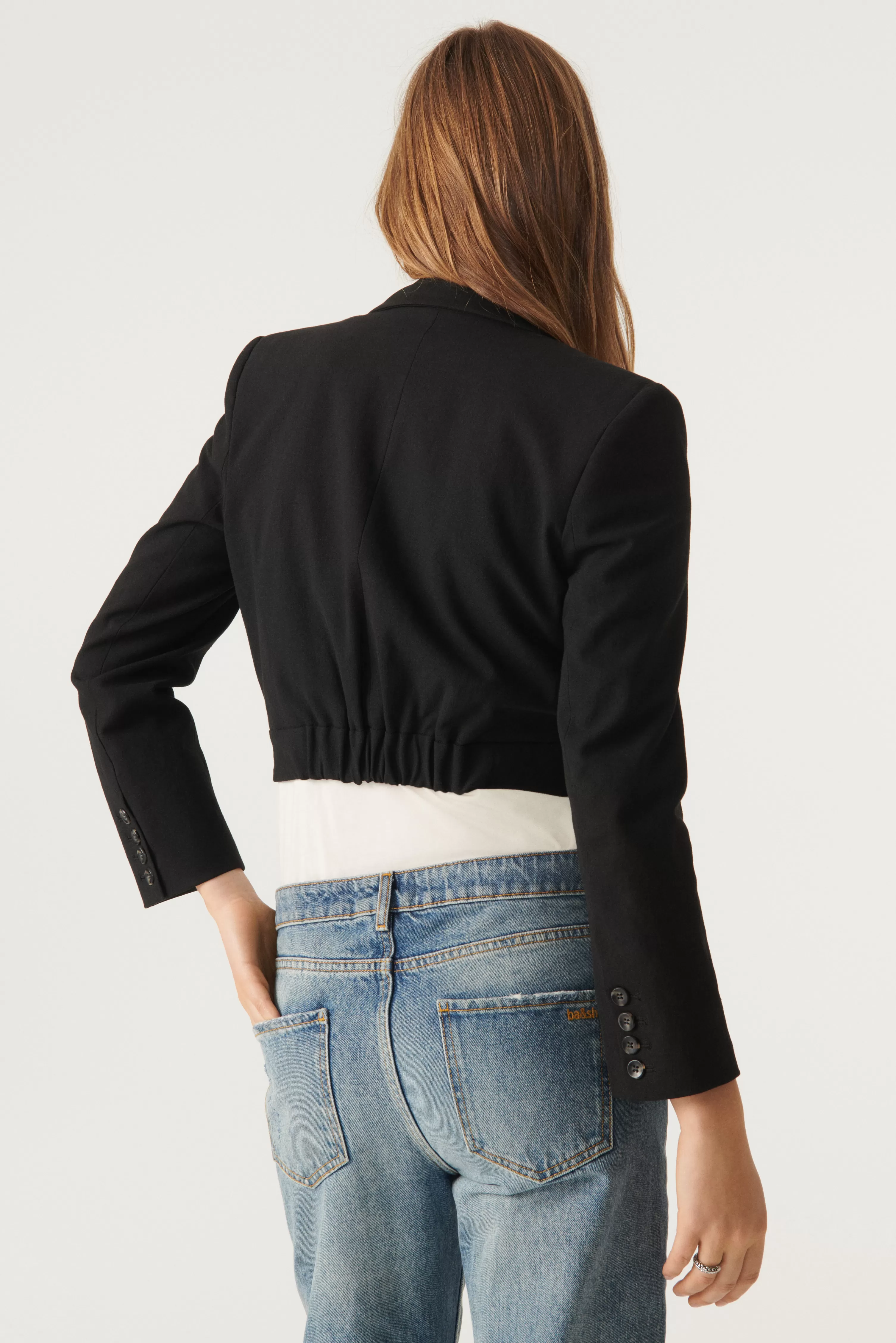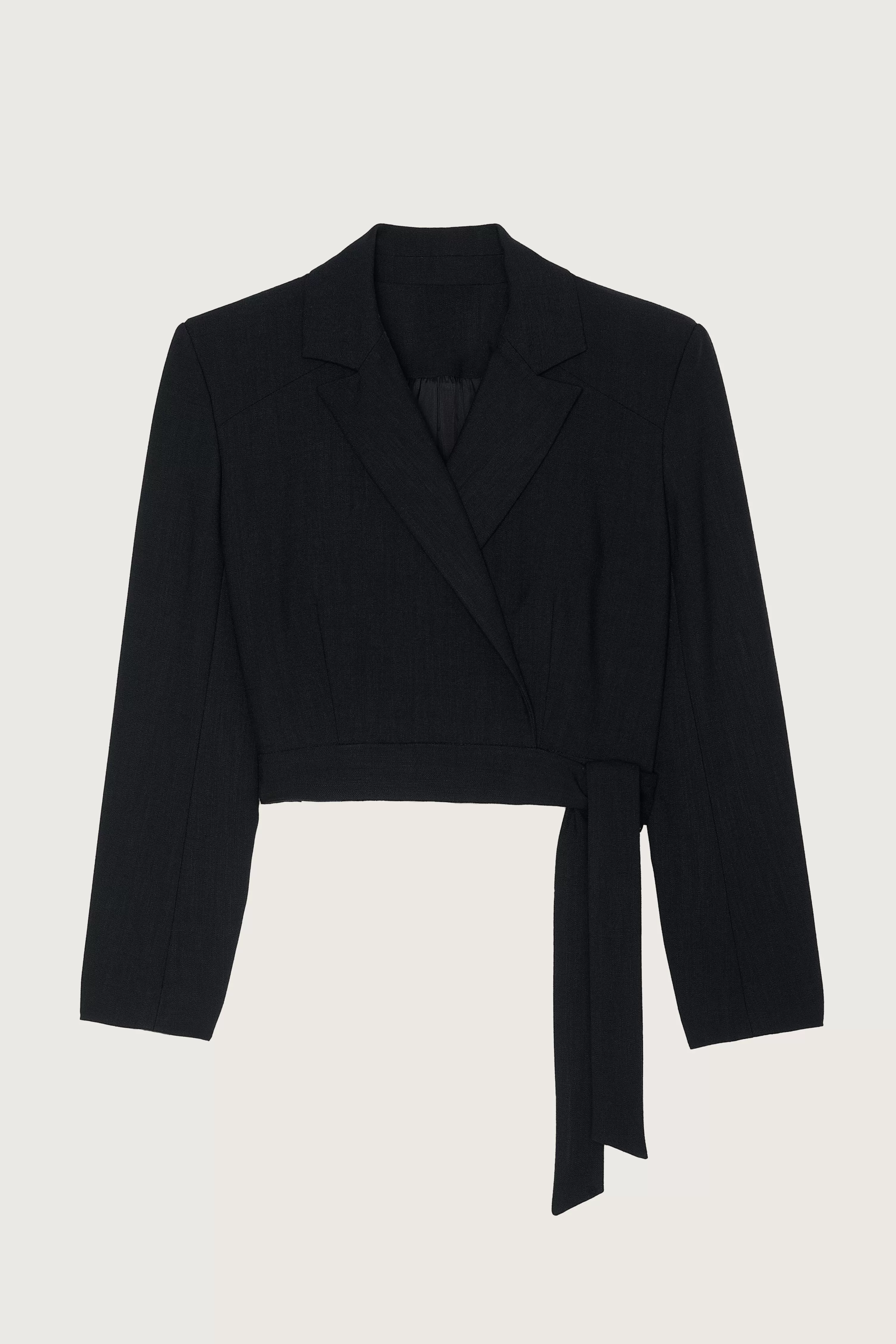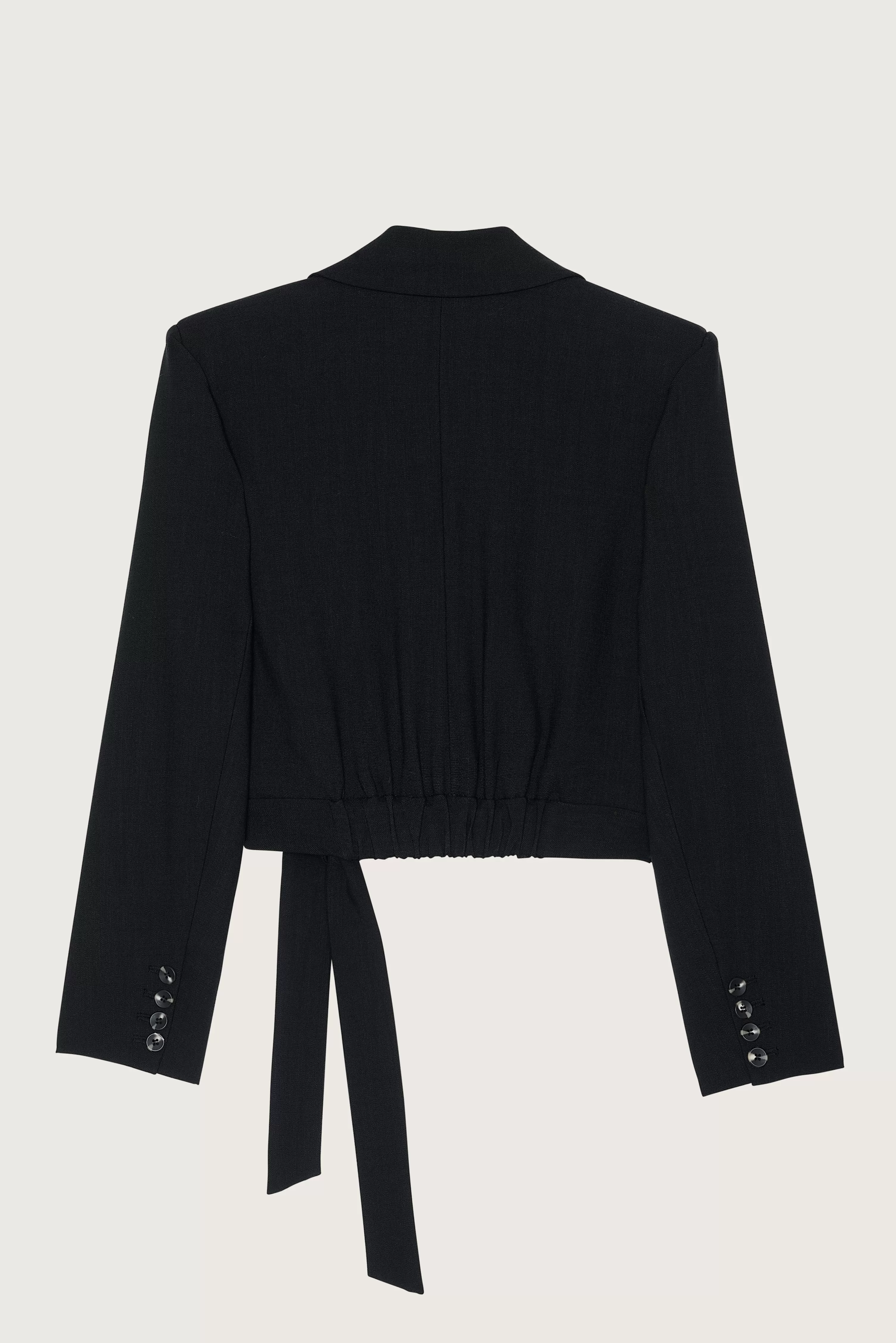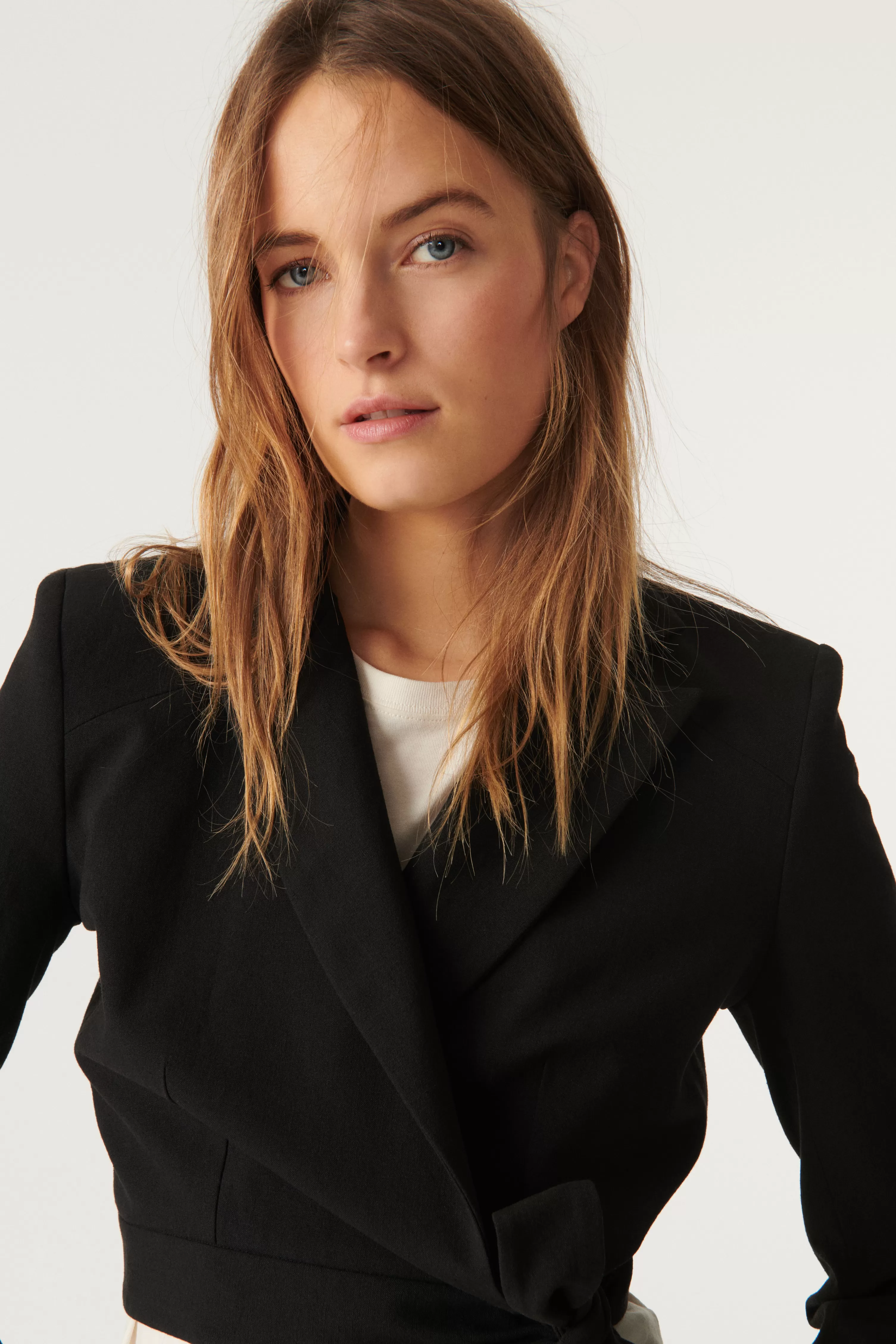 Het Esta-Jack Verleidt Met Zijn Chique En Ontspannen Look. Dit Korte Jasje Met Schouders Heeft Een Reverskraag, Figuurnaden Onder De Buste, Een Overslagsluiting En Een Brede Band Die De Taille Accentueert En Vervolgens Aan De Linkerkant Wordt Gestrikt. Het Is Gemaakt Van Een Mooie Soepele Viscose. Het Modedetail? Het Brede Elastiek In De Taille Aan De Achterkant Geeft ‘M Een Beetje Rock’N Roll Kant! Combineer Met De Bijpassende Pantalon Voor Een Kostuum Met Een Resoluut Moderne Look.