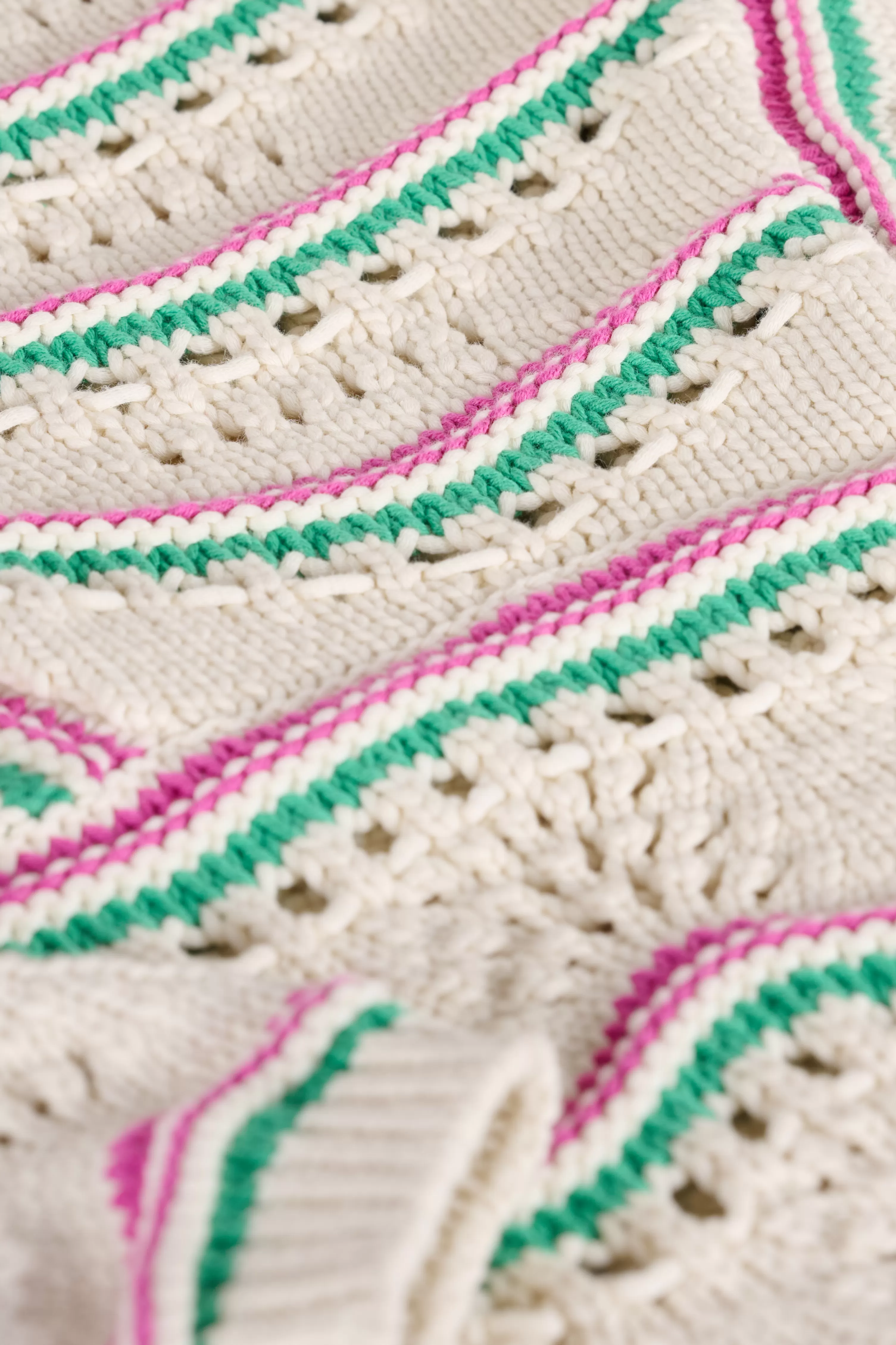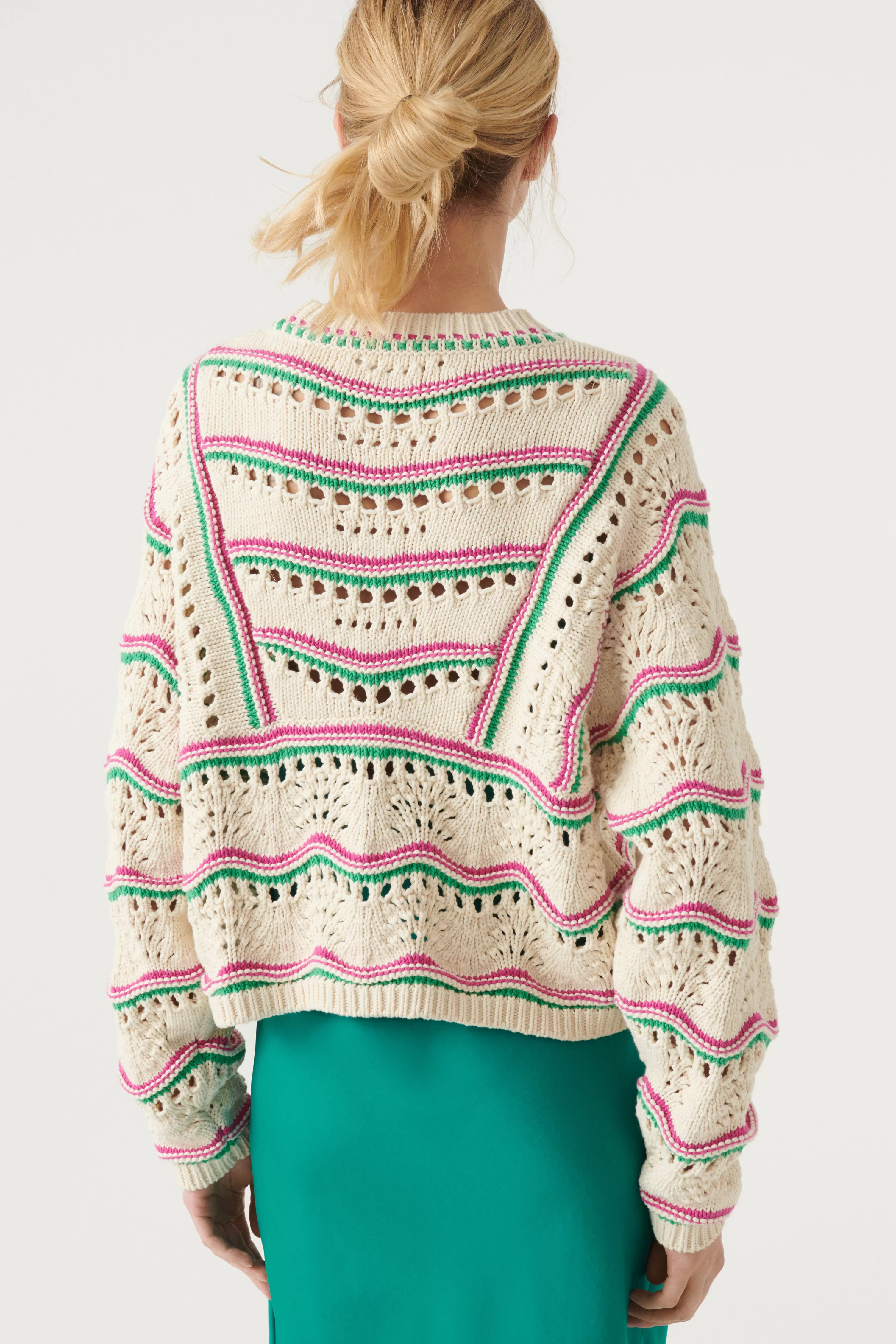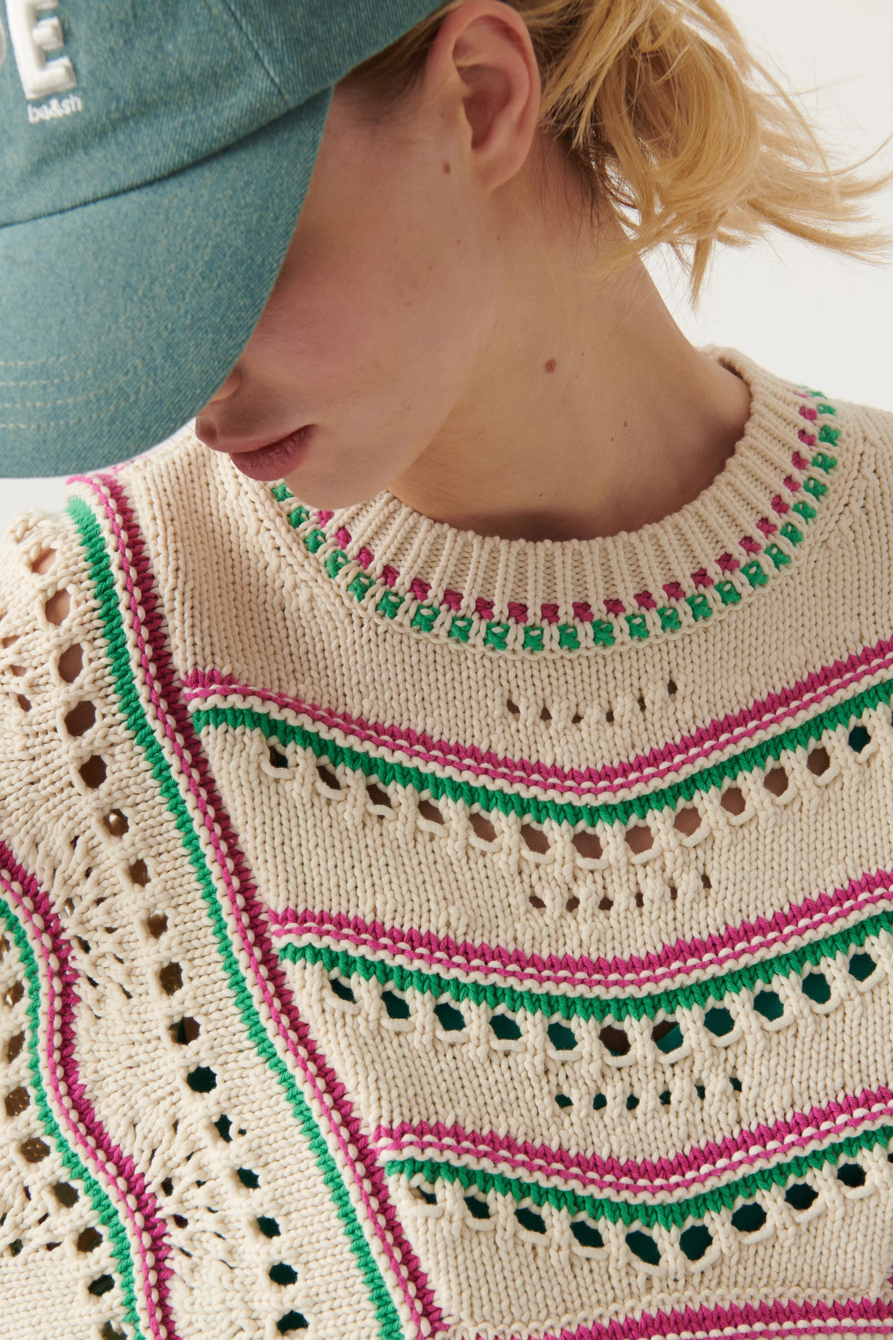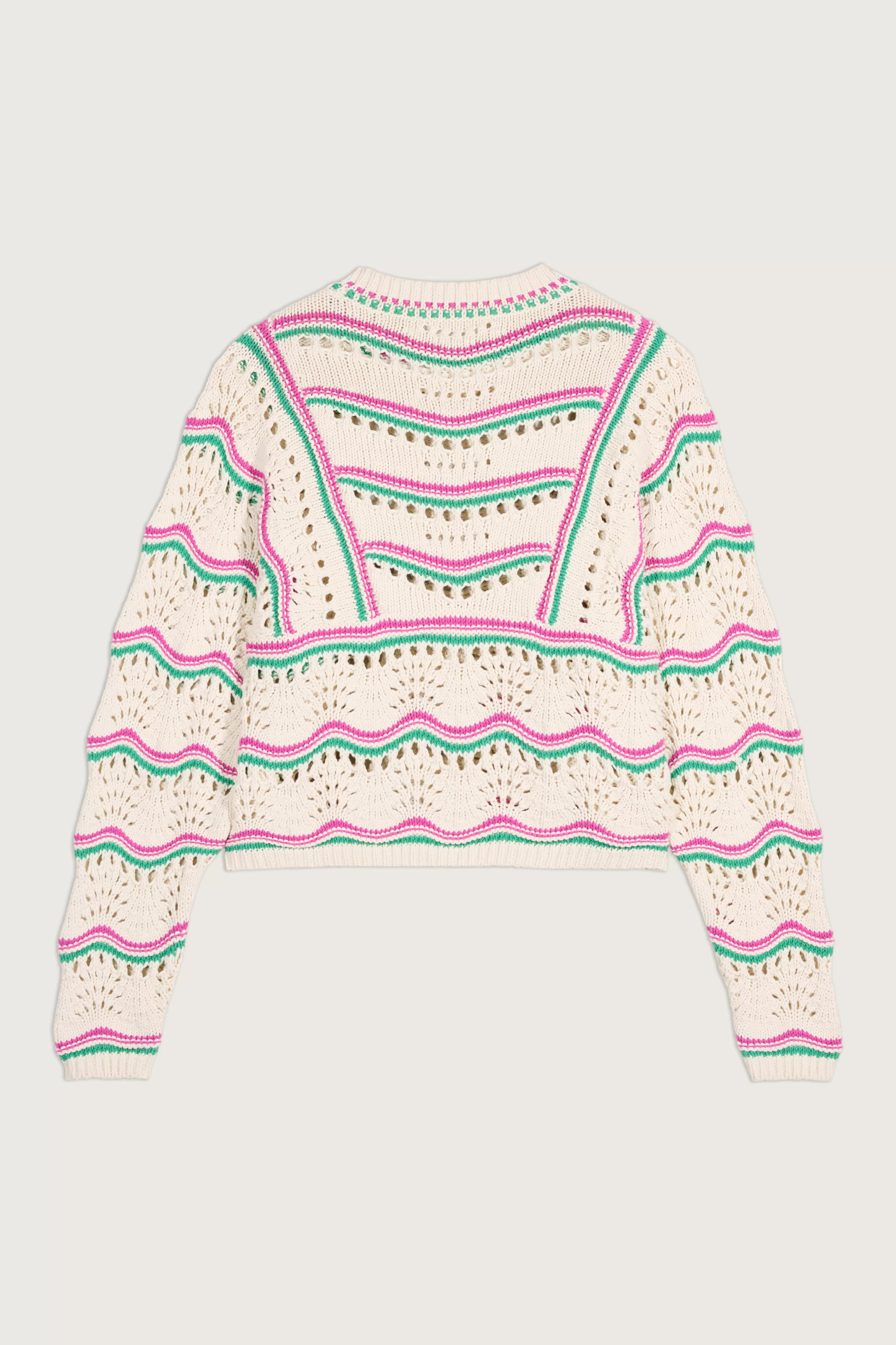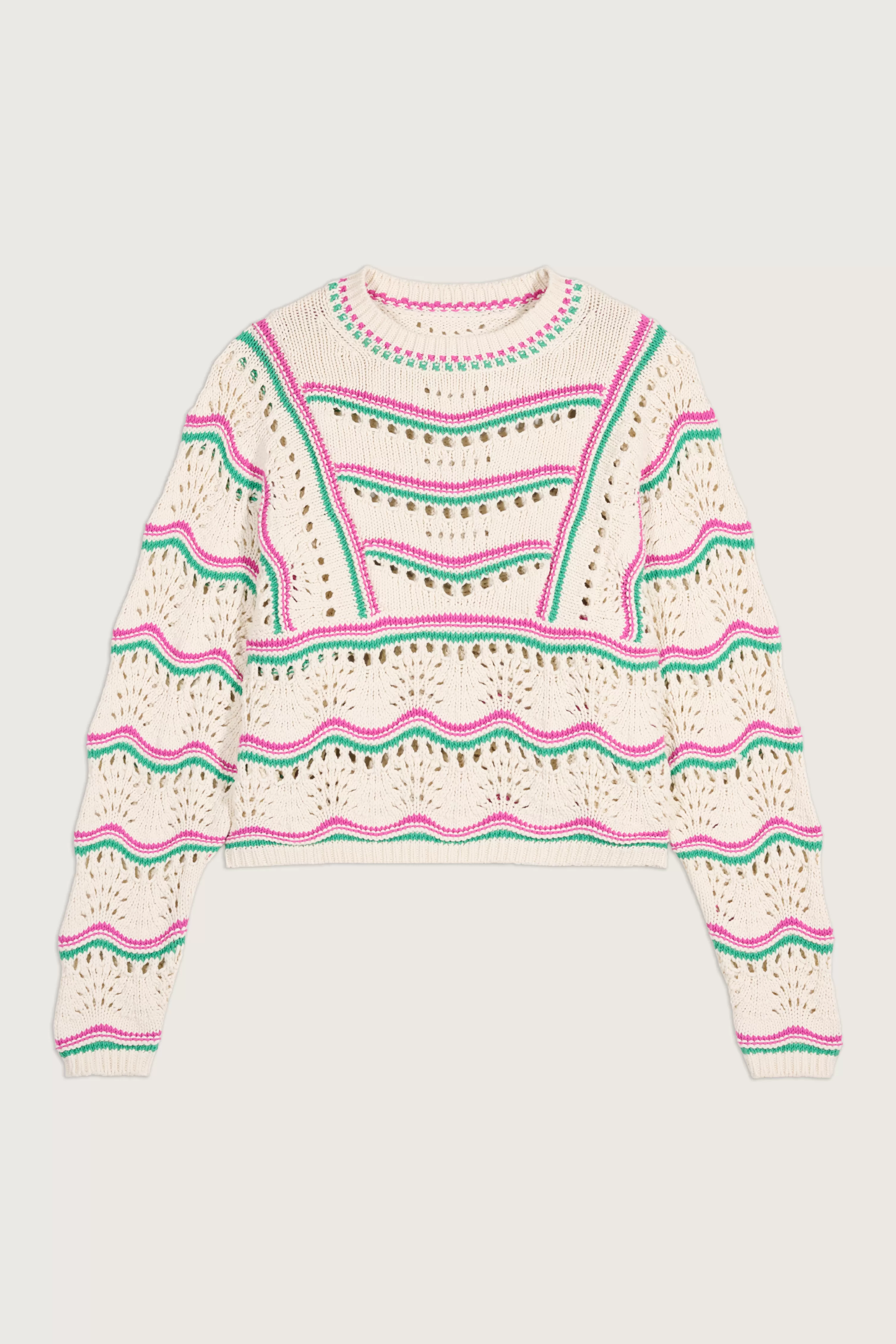 Breng Een Cocooning-Stijl In Je Outfit Door Te Vallen Voor De Hicham-Sweater! Dit Model Met Ronde Hals Onderscheidt Zich Door Zijn Grafische Microstrepen. Dit Verrukkelijke Stijleffect Wordt Onderstreept Door Het Directionele Spel Van Het Pointelle-Breisel Dat Een Unieke Esthetiek Creeert. Met Zijn Oversized Snit Vergezelt Deze Trui Je Elke Dag, Op Het Werk En In Je Vrije Tijd. Het Kan Naar Wens Over Een Broek Of Een Lange Rok Worden Gedragen. Overweeg Om Het Te Verfraaien Met Een Etnische Ketting Om Je Look Te Personaliseren.