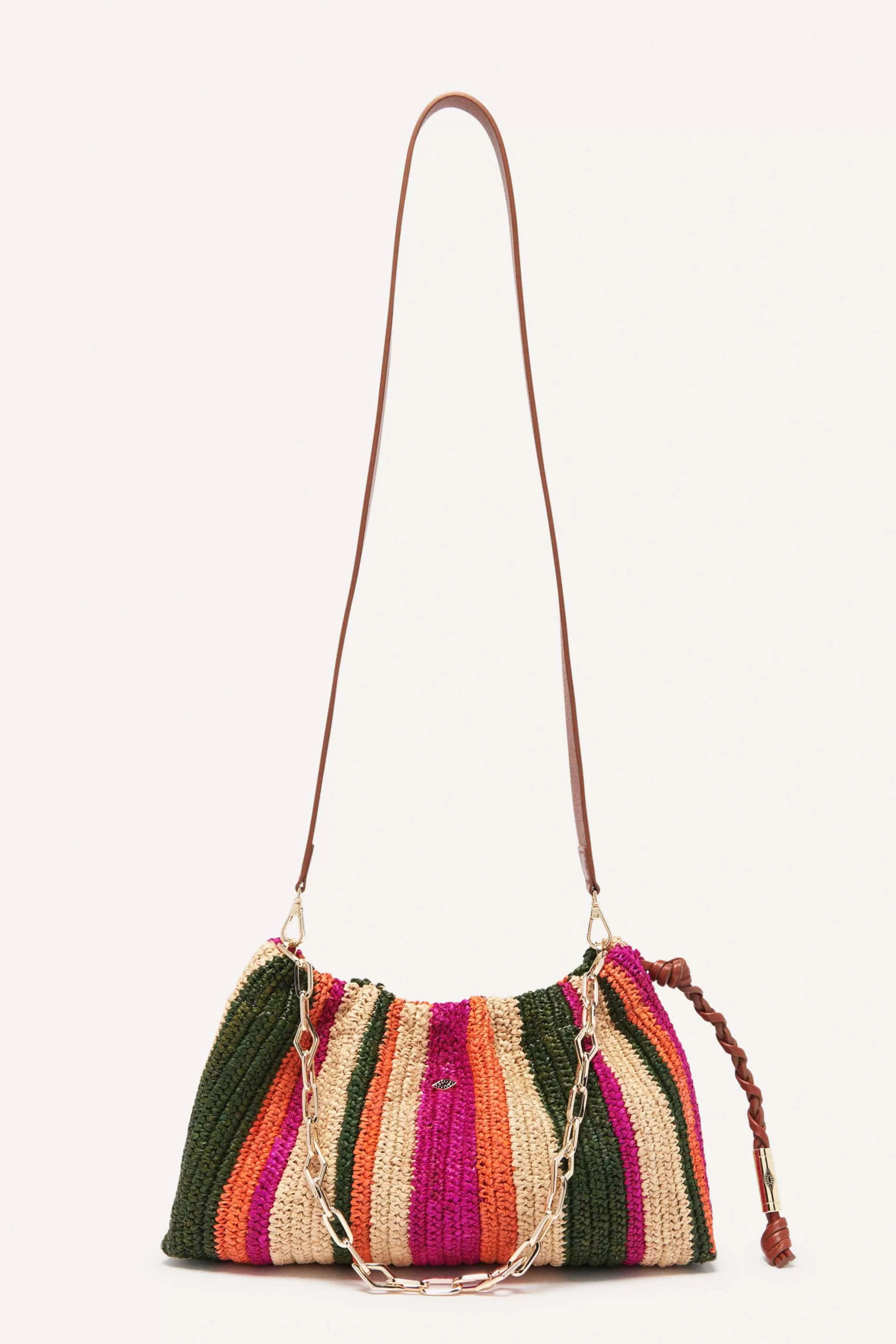 Wij Smelten Helemaal Voor De Charme Van De June Tas! Dit Veelkleurige Raffia-Model Heeft Een Afneembare Leren Schouderband En Een Kettinghandvat En Kan In De Hand, Over De Schouder Of Over Het Lichaam Worden Gedragen. Het Zal Een Sensatie Veroorzaken Bij Een Bohemien-Chique Stijl, Maar Ook Bij Een Meer Klassieke Outfit Door Een Beetje Fantasie Te Brengen.