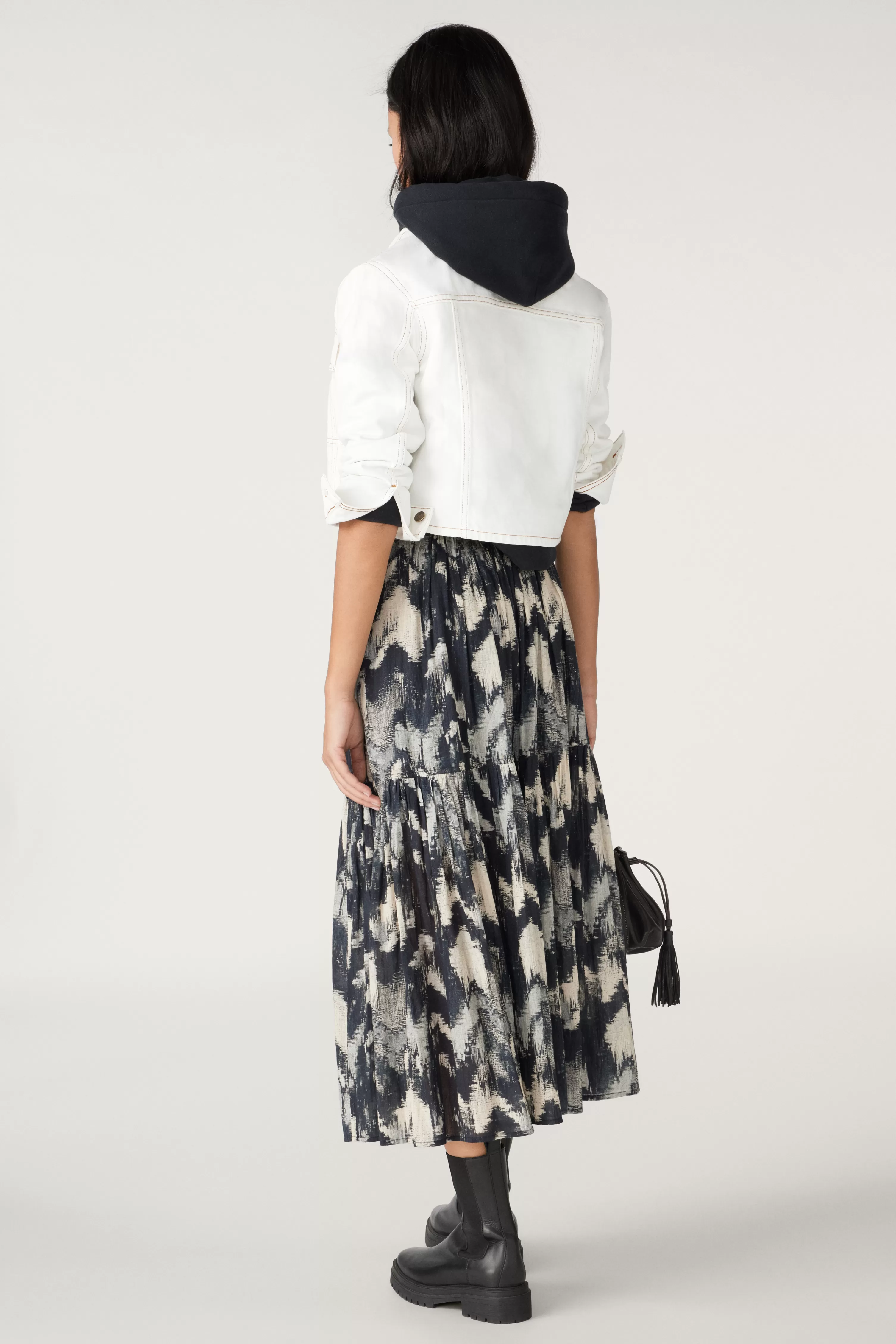 Bohemian Chic Look Voor De Amalia Rok! Deze Petticoat In Danserstijl Is Prachtig Losjes Met Plooien In De Taille En Aan De Onderzijde Voor Een Romantisch Zigeunergevoel. De Taille Is Aangepast, Gesloten Door Een Onzichtbare Ritssluiting Aan De Zijkant. We Houden Van Het Gekreukte Katoen Dat Is Gekleed In Grote Kleurspatten Als Een Abstract Schilderij. Een Vrouwelijke Petticoat Die Past Bij Een Cropped Effen Top Voor Een Bohemien Look.