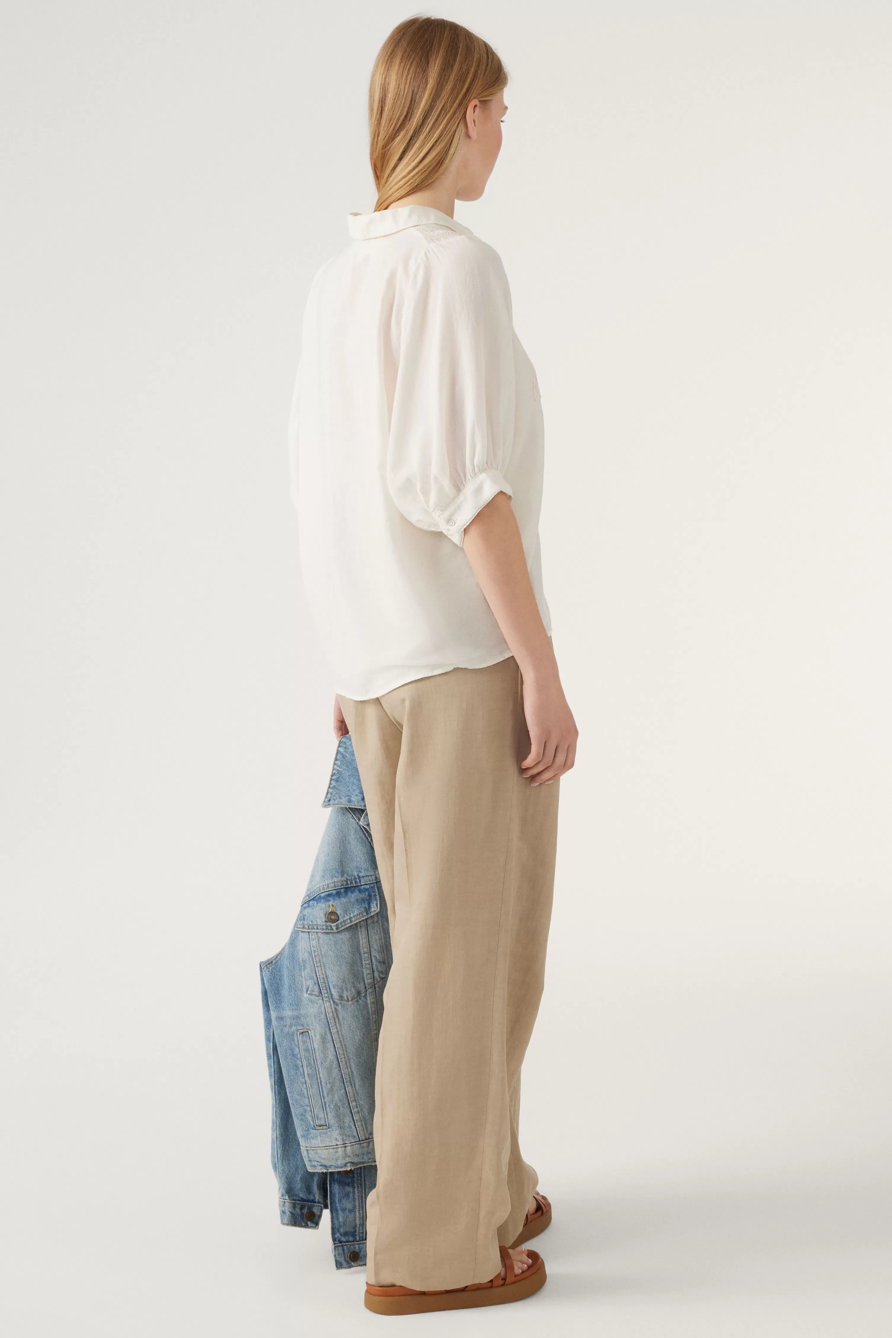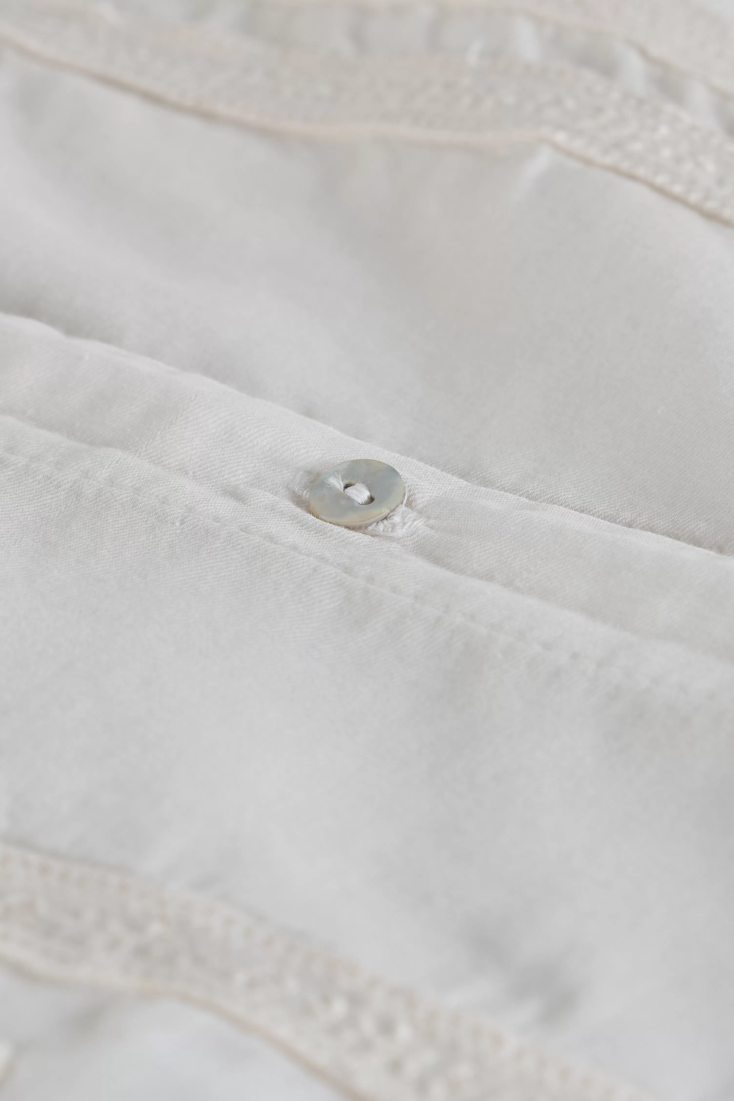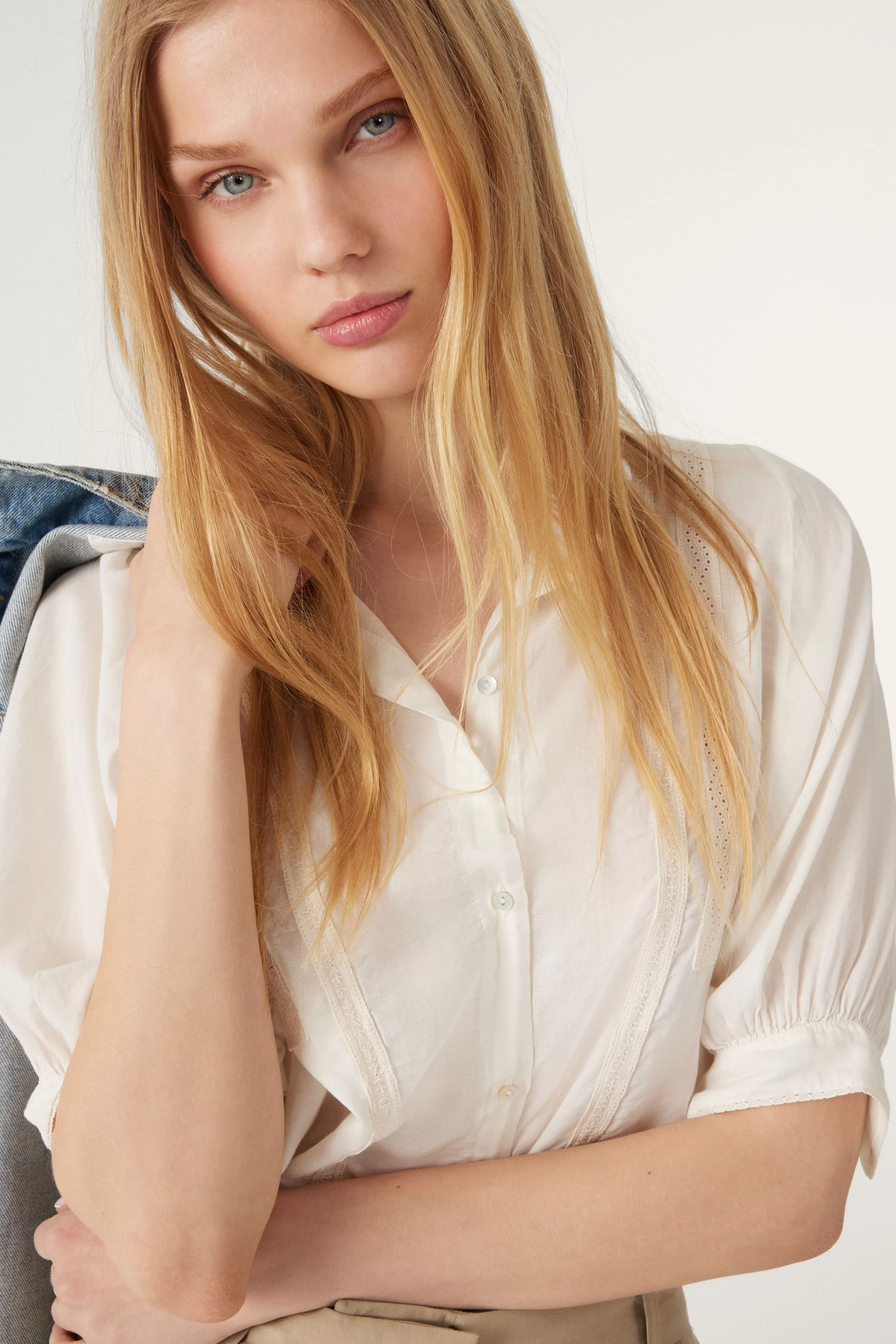 Het Talali-Hemd Is Een Soepel Model, Zeer Aangenaam Om Te Dragen In Elk Seizoen. Gemaakt In Portugal, Het Heeft Halflange Mouwen, Met Strakke En Licht Losse Randen Voor Totaal Comfort. Dit Shirt Belemmert De Beweging Niet, Het Is Ultra Vrouwelijk En Vloeiend. Het Sluit Aan De Voorkant Met Kleine, Zeer Vrouwelijke Knoopjes. We Houden Van De Kanten Linten Die Aan De Voorkant Zijn Toegevoegd En Die Een Ultiem Vleugje Elegantie Aan Het Stuk Geven. Combineer Met Een Korte Broek, Een Broek Of Een Rok, Je Look Is Perfect!