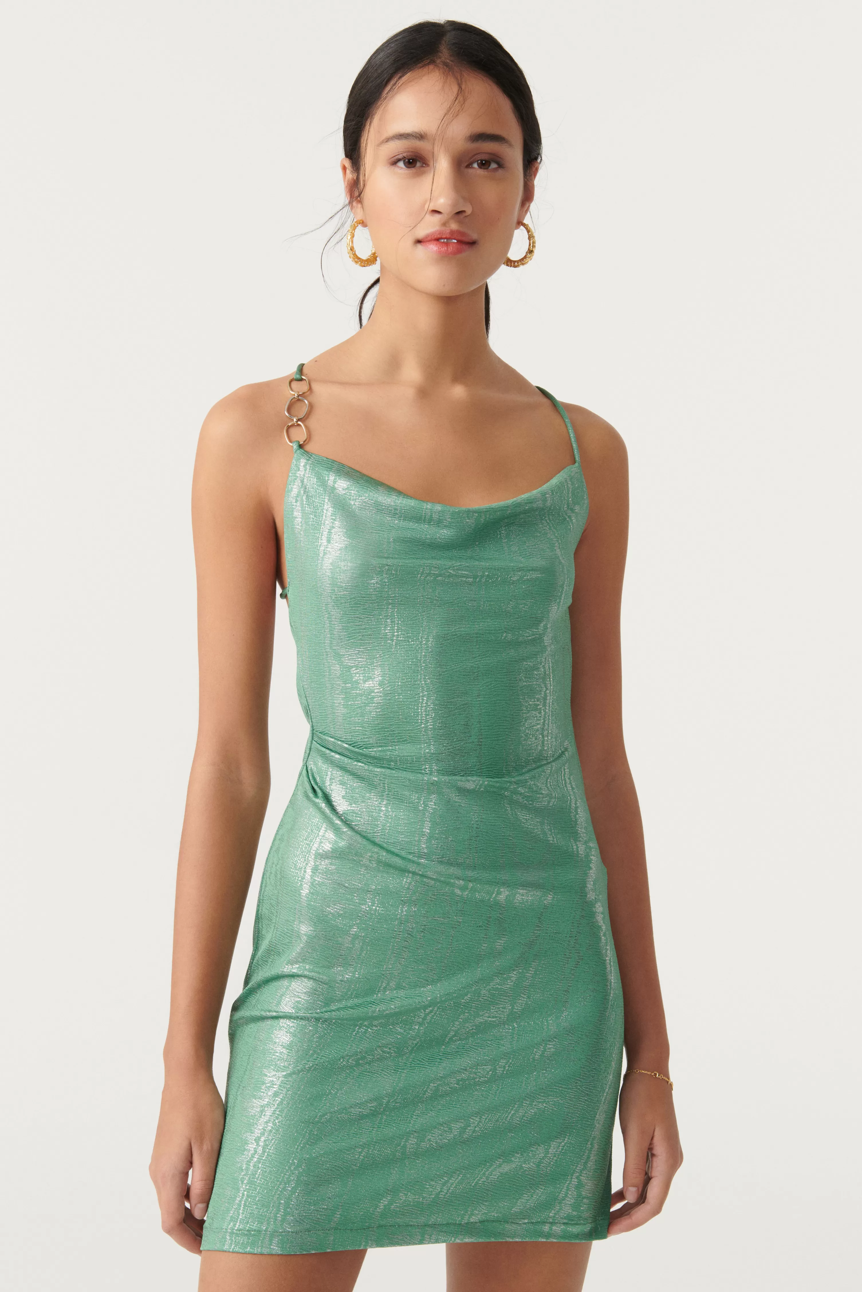 Vrouwelijk Naar Believen, De Slipdress Tanusha Zit Vol Details Om Voor Te Sterven. Dit Glamoureuze Model Onderscheidt Zich Door Zijn Watervalhals Voor En Achter. De Dunne Bandjes Die Op De Rug Gekruist Zijn, Zijn Versierd Met Twee Gouden Gespen En Een Zilveren Gesp Op De Rechterschouder. Deze Jurk Is Gemaakt Van Glanzende Jersey En Wordt Dicht Op Het Lichaam Gedragen Voor Een Sexy Stijl. Met Pumps Of Enkellaarsjes Met Hak Wordt Je De Koningin Van De Avond.